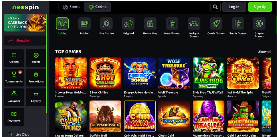 Progressive jackpots are also a highlight here, giving you a shot at six-figure wins if luck is on your side. Whether you prefer simple fruit machines or complex feature-packed pokies, NeoSpin has you covered.